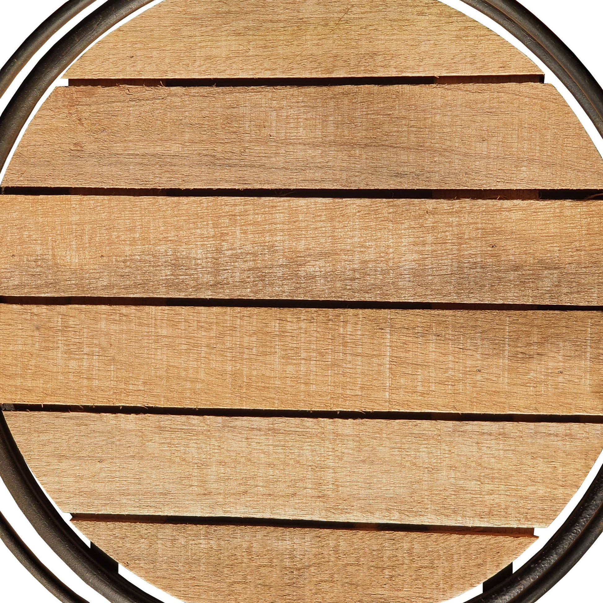 Round Tubular Metal Frame Tray with Plank Style Wooden Base, Brown and Black